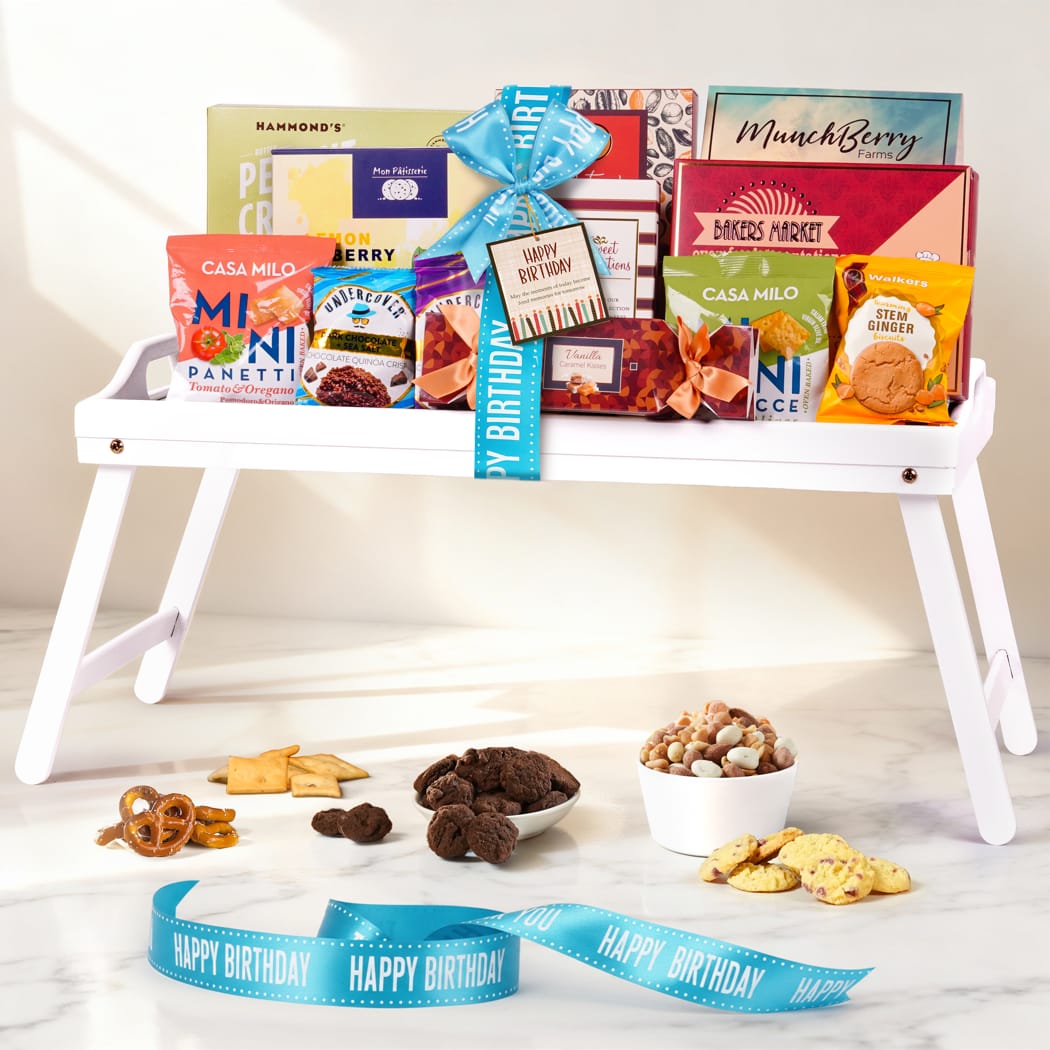 If you’re in need of a unique and thoughtful gift, this Breakfast Tray is the perfection gift for any occasion or holiday. Each wooden tray includes an assortment of gourmet treats that are ready to be enjoyed.