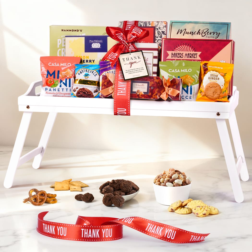 There’s no better way to say thank you than with a delicious breakfast in bed! This premium wooden breakfast tray is perfect for breakfast in bed and includes a delicious assortment of gourmet treats to help your recipient start their day right.
